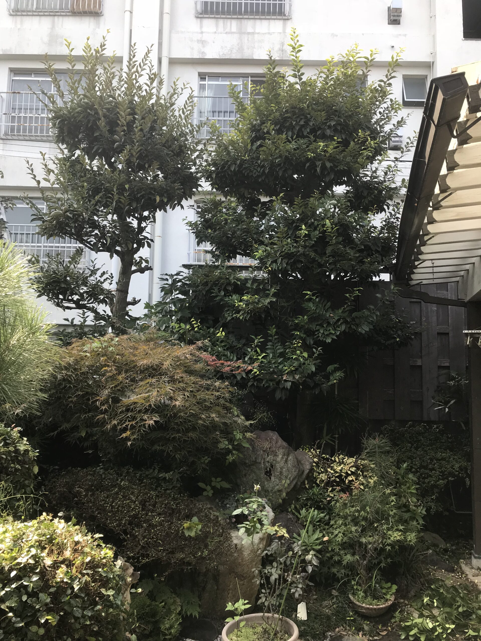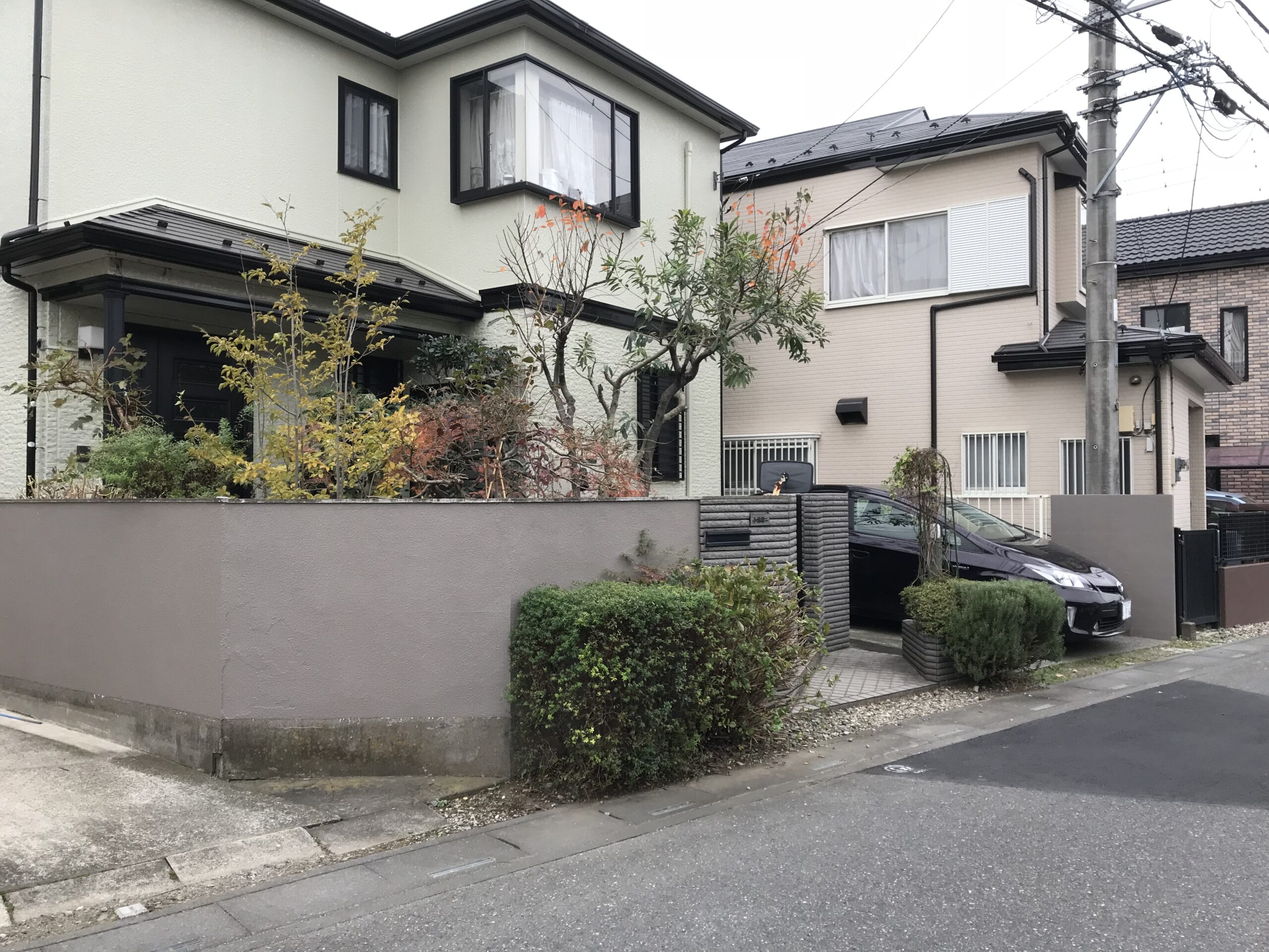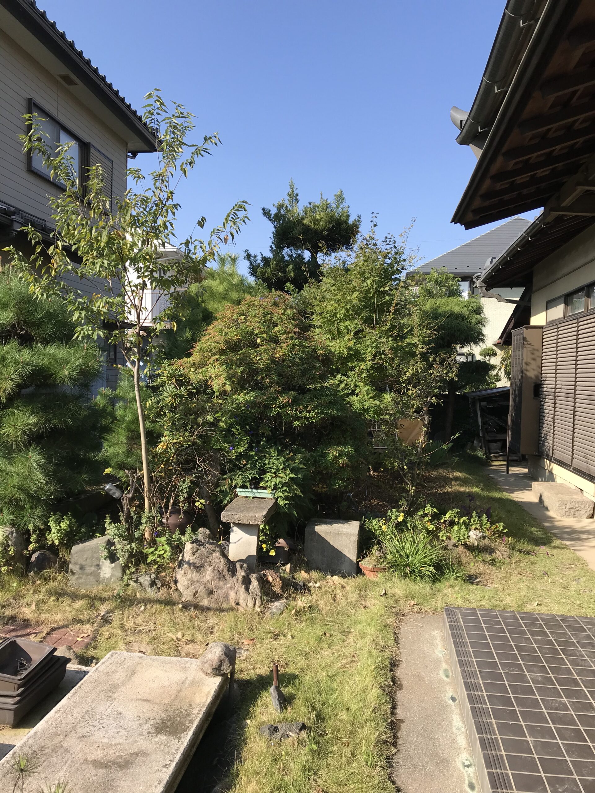 お庭の壁の際に植えていた植木を伐根いたしました。