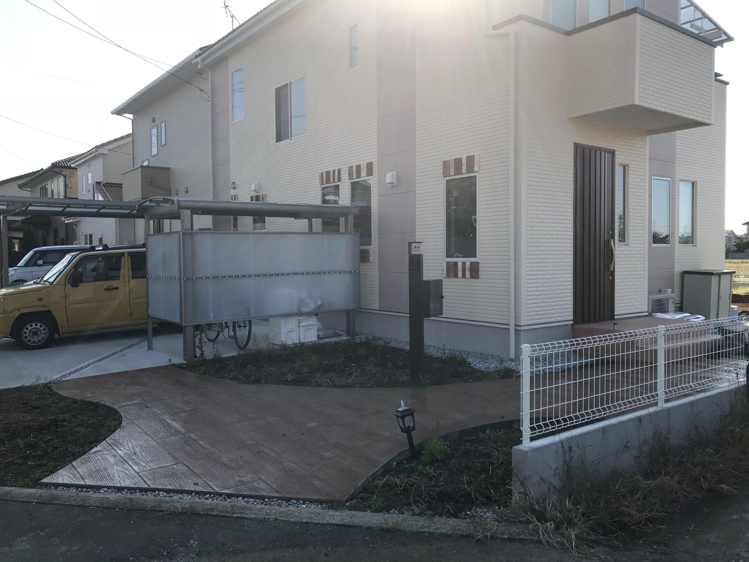 お庭に生い茂った雑草を刈り、整地、敷砂利いたしました。
