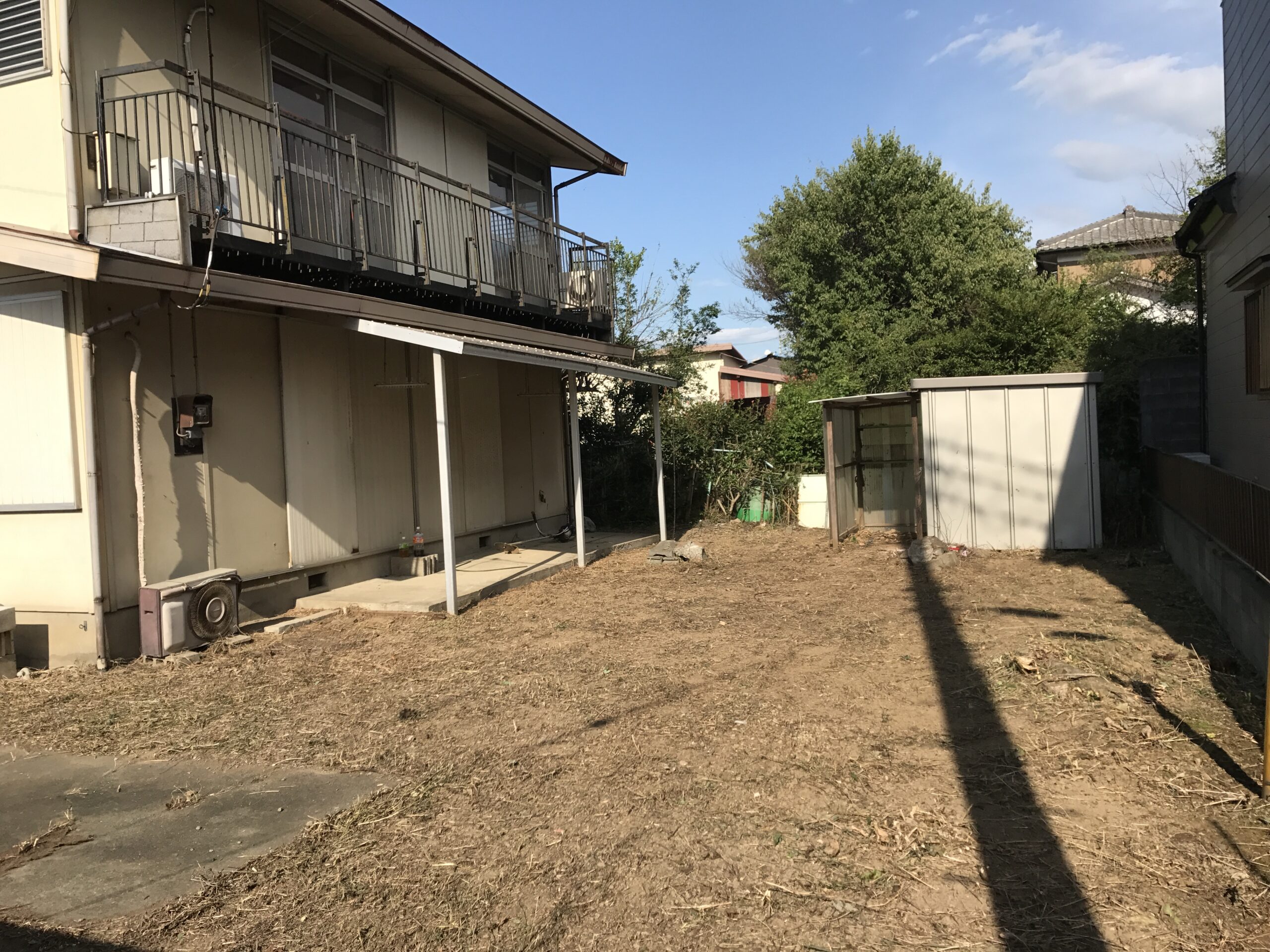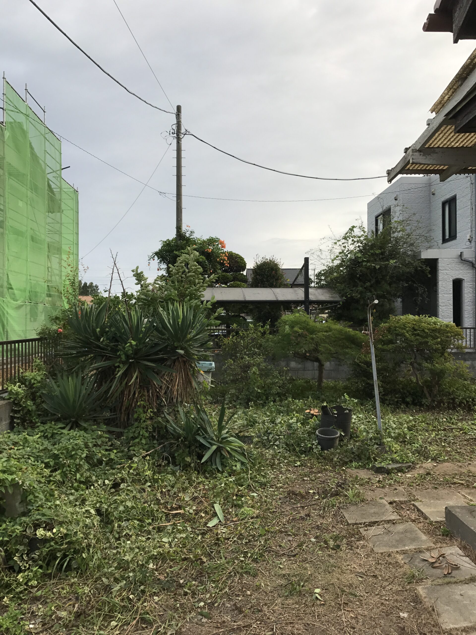 お庭の壁の際に植えていた植木を伐根いたしました。