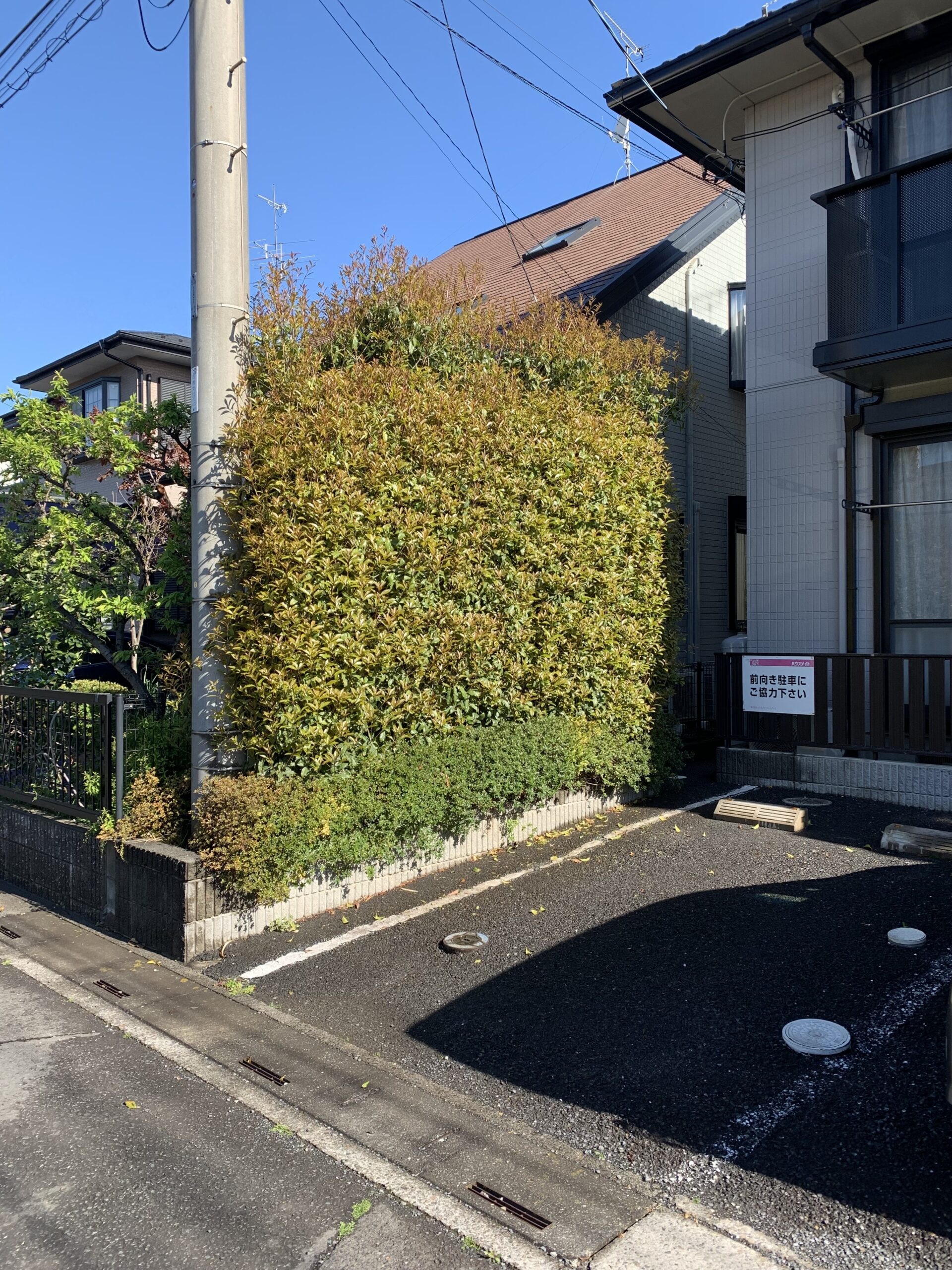 お庭の壁の際に植えていた植木を伐根いたしました。