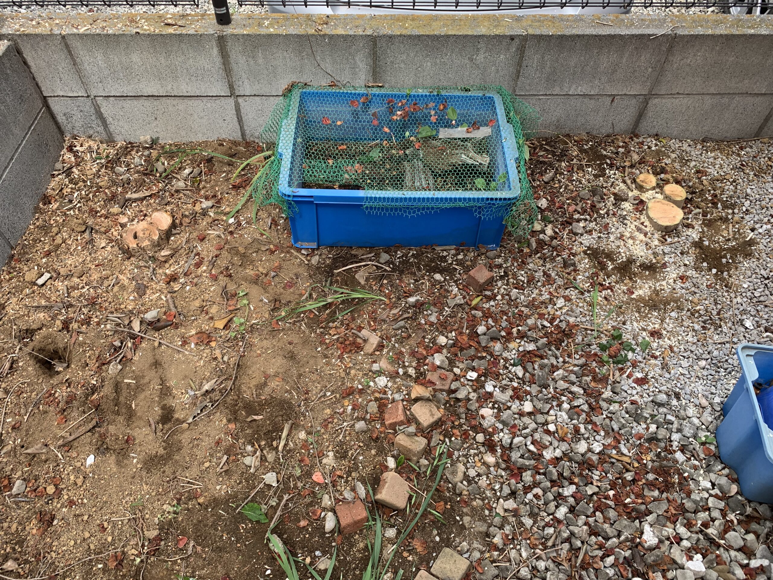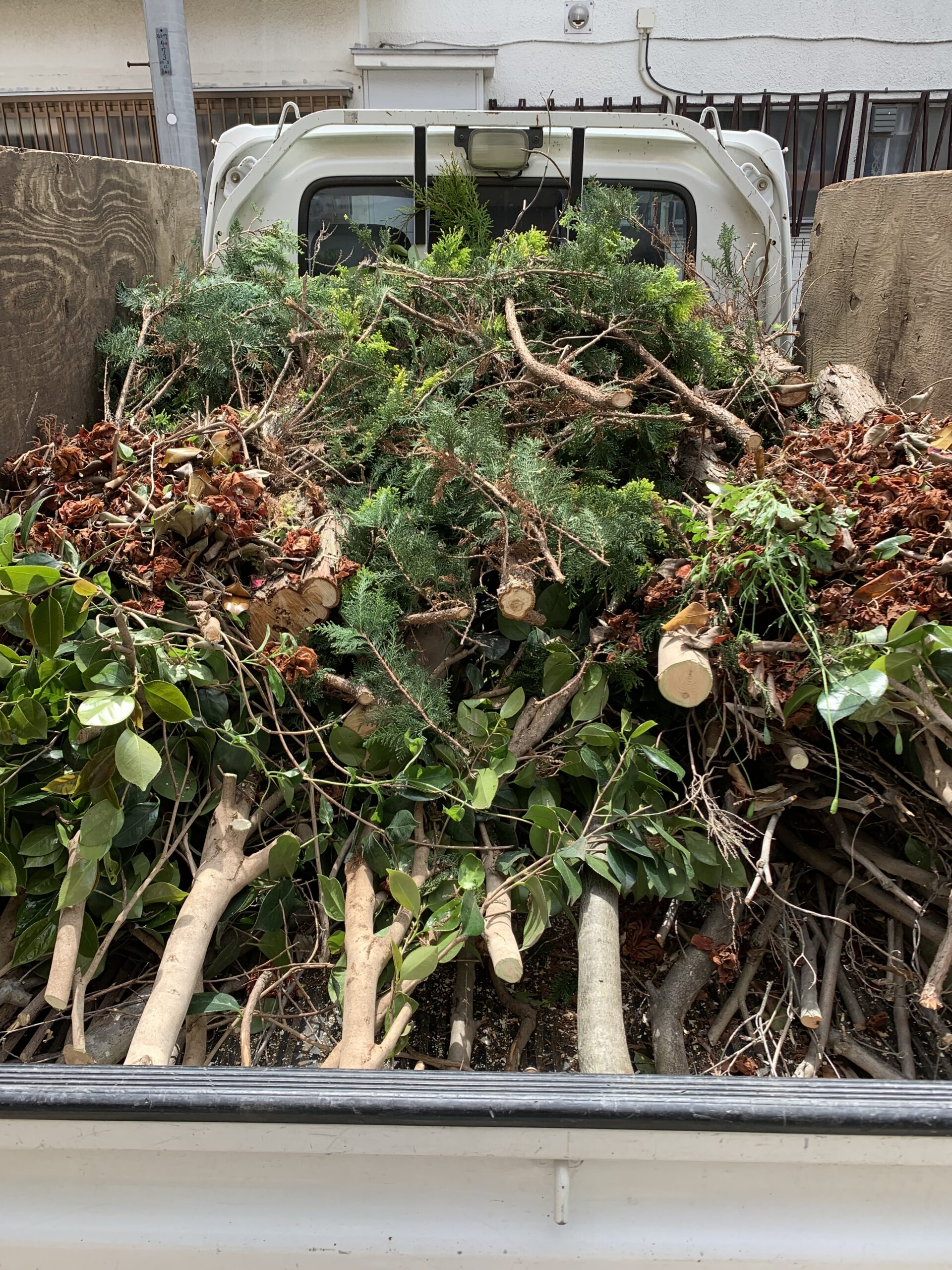 伐根は生垣のツバキ五本です。切りすぎた事が原因で枯れてしまった五本程の椿を伐根しました。それ以外にも庭石の移動や植木の消毒などを行いました。