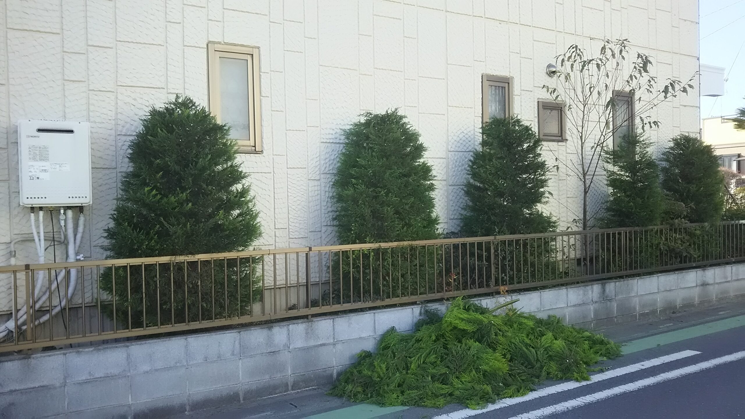 お庭の壁の際に植えていた植木を伐根いたしました。