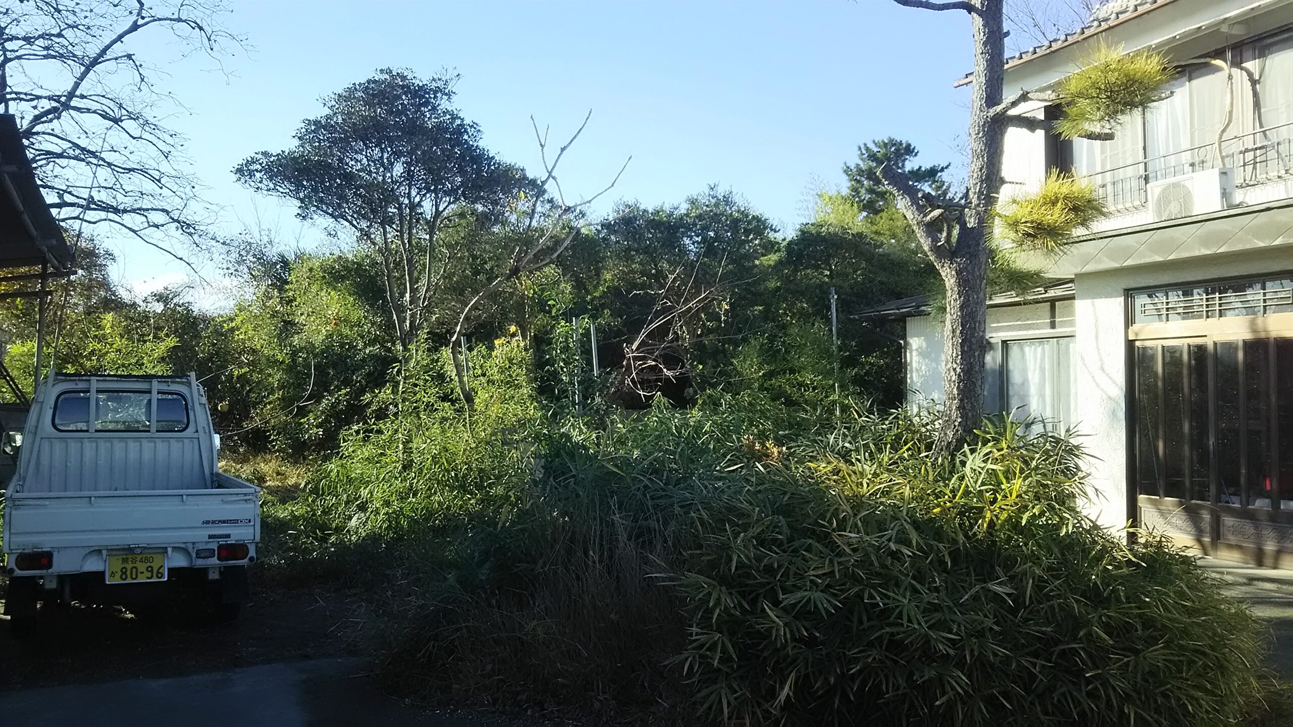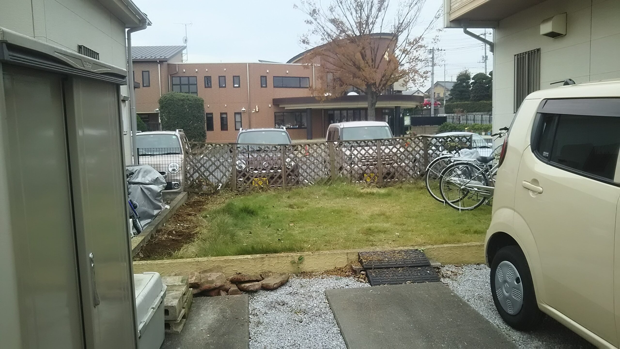 お庭に生い茂った雑草を刈り、整地、敷砂利いたしました。